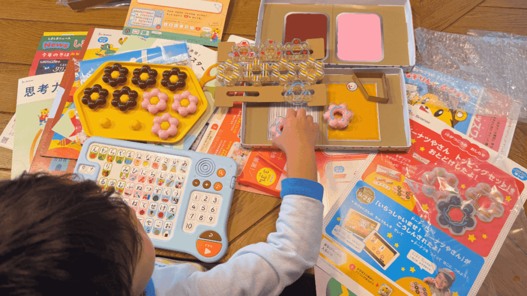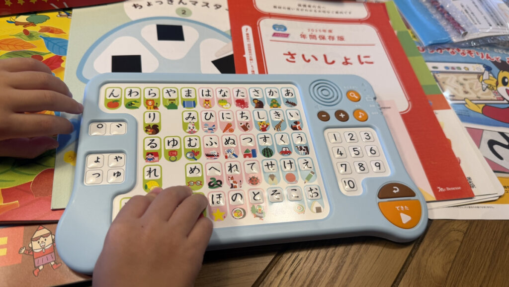 こどもちゃれんじはタブレット学習以外に、「エデュトイ」という遊びながら学べる知育教材や、年少さん向けであれば「ひらがな・かずキーボード」などタブレットと連動して学べるツールが充実しています。