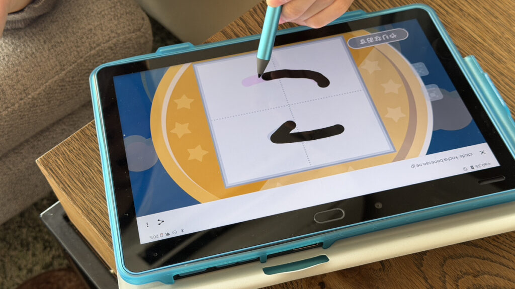 付属のタッチペンの書き心地も良く、ひらがな・カタカナを書いたり、お絵描きなどを楽しむには調度良いかと思います!