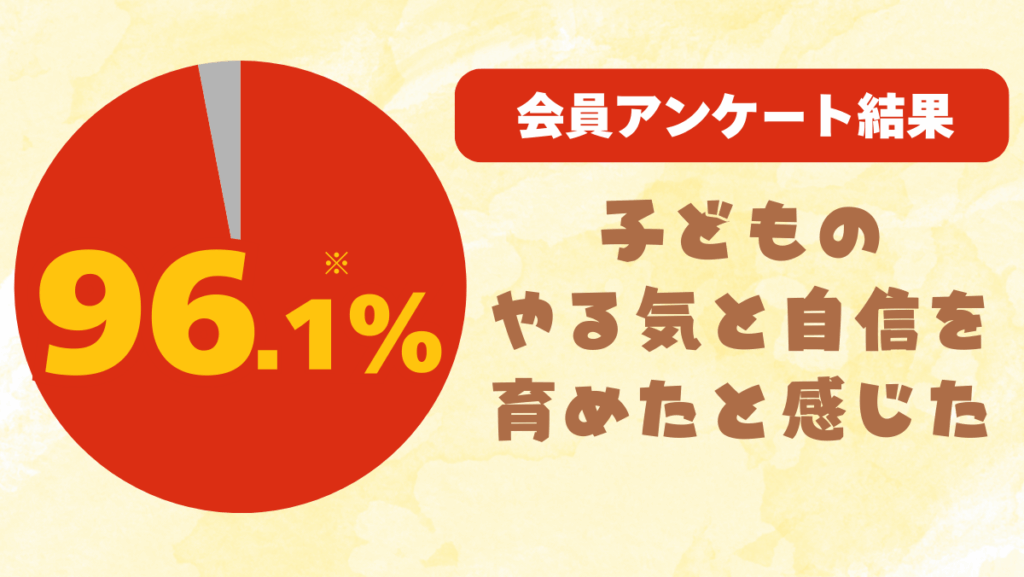 また実際に会員になっている保護者へのアンケート結果をみても「子どものやる気や自信を育めた」と感じる方が大多数を占めており、非常に満足度が高いことが分かります。